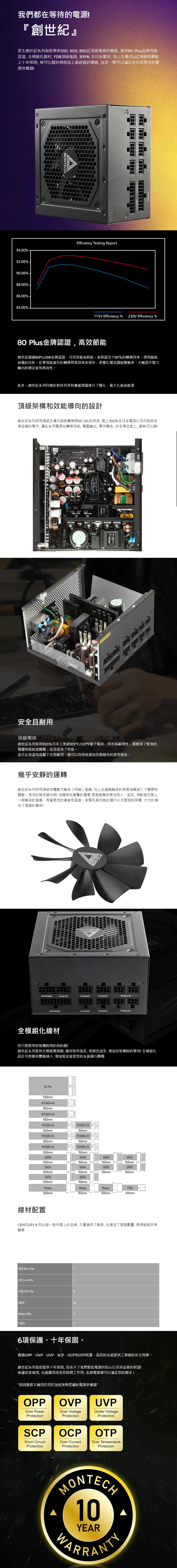 Montech CENTURY 850W 雙8/金牌/全模/DC-DC/日系/10年