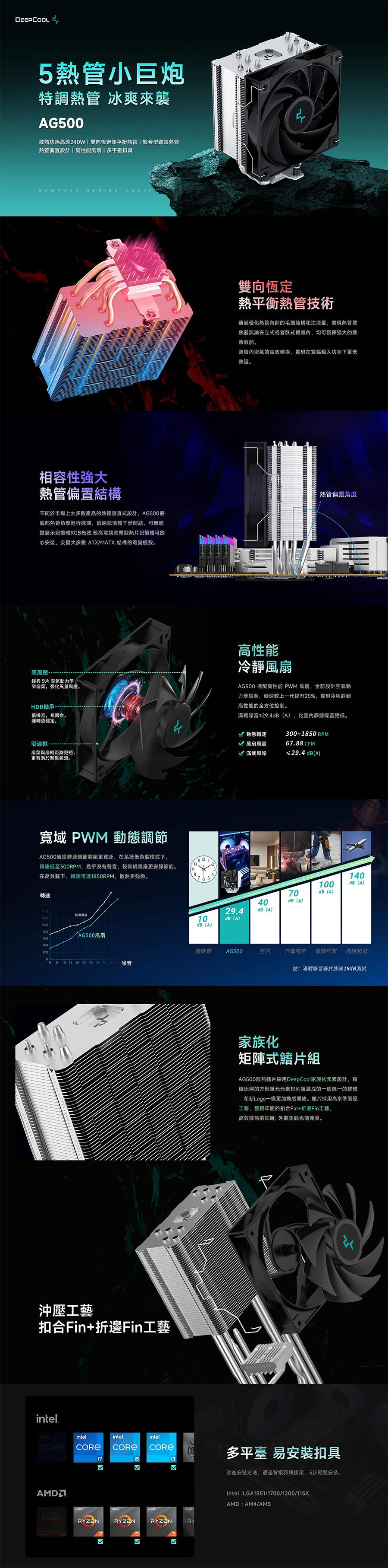 DEEPCOOL 九州風神 AG500 單塔/5導管/支援LGA1851/AM5